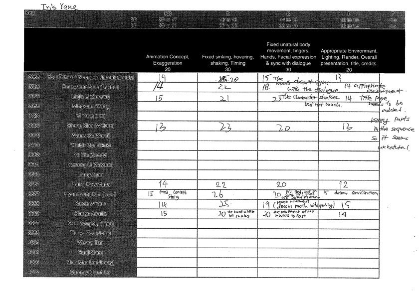 Thanks for you kindly spent your own time on my animation and gave me feedback out of class.